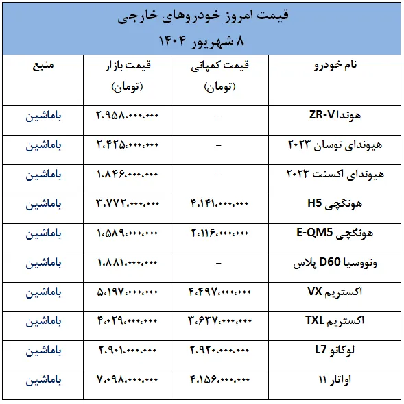 در حالی که خودروهای خارجی از حدود 1.2 میلیارد تومان تا بیش از 7 میلیارد تومان قیمتگذاری شدهاند.