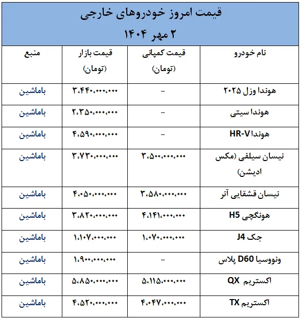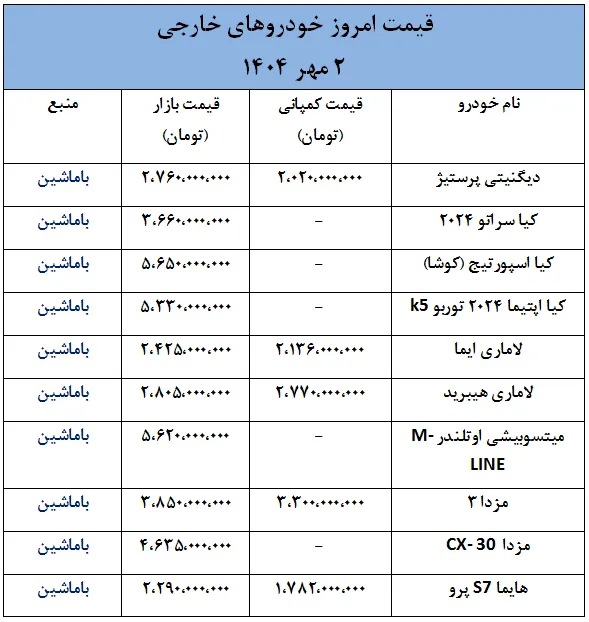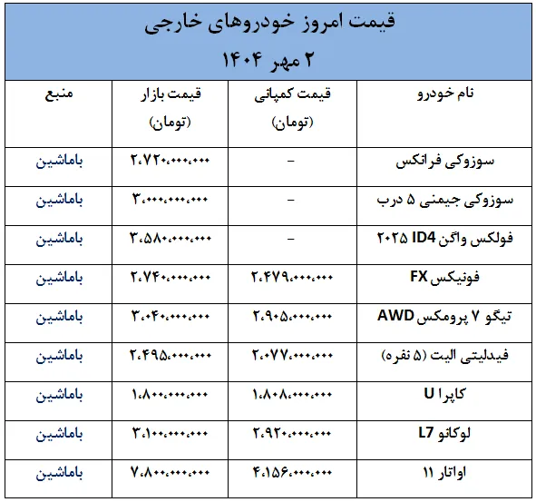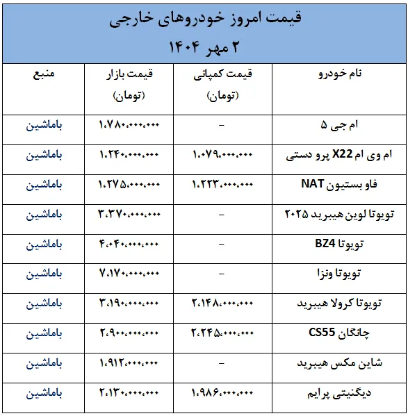 به گزارش باماشین، در چند روز گذشته، بازار خودروهای خارجی در ایران تحت تأثیر نوسانات نرخ دلار که روندی افزایشی داشته، شاهد تغییرات قیمتی قابل توجهی بوده است.