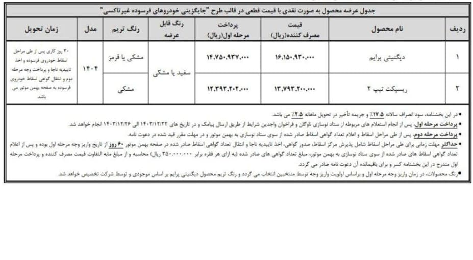 شرایط پیش ثبت نام فروش نقدی دیگنیتی و ریسپکت2-اسفند ماه 1403