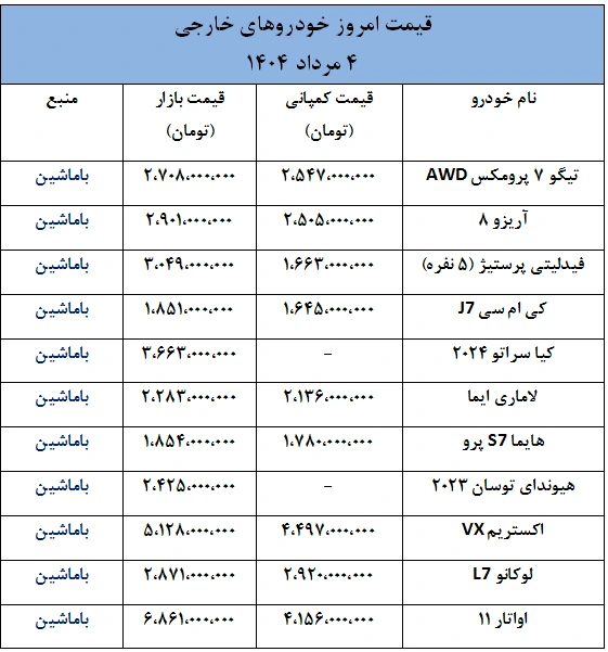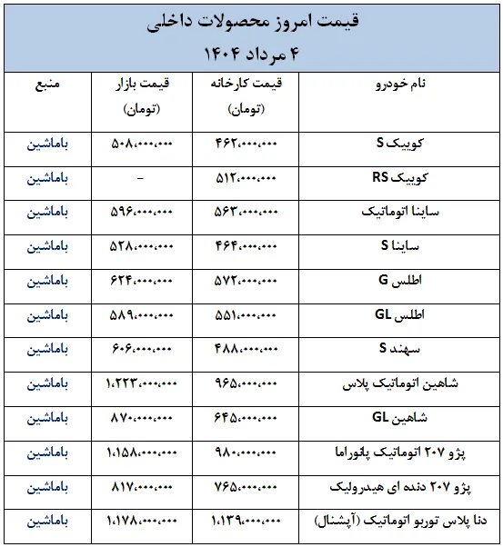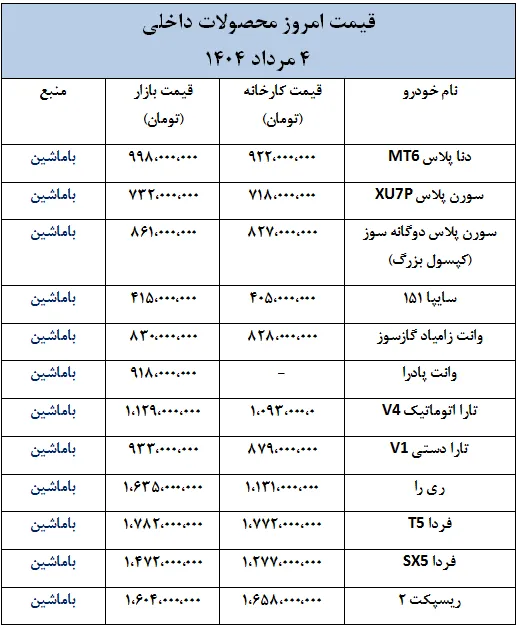 در ادامه قیمت روز خودروهای داخلی و خارجی در جدول برای شما مخاطبان ارائه شده است.
