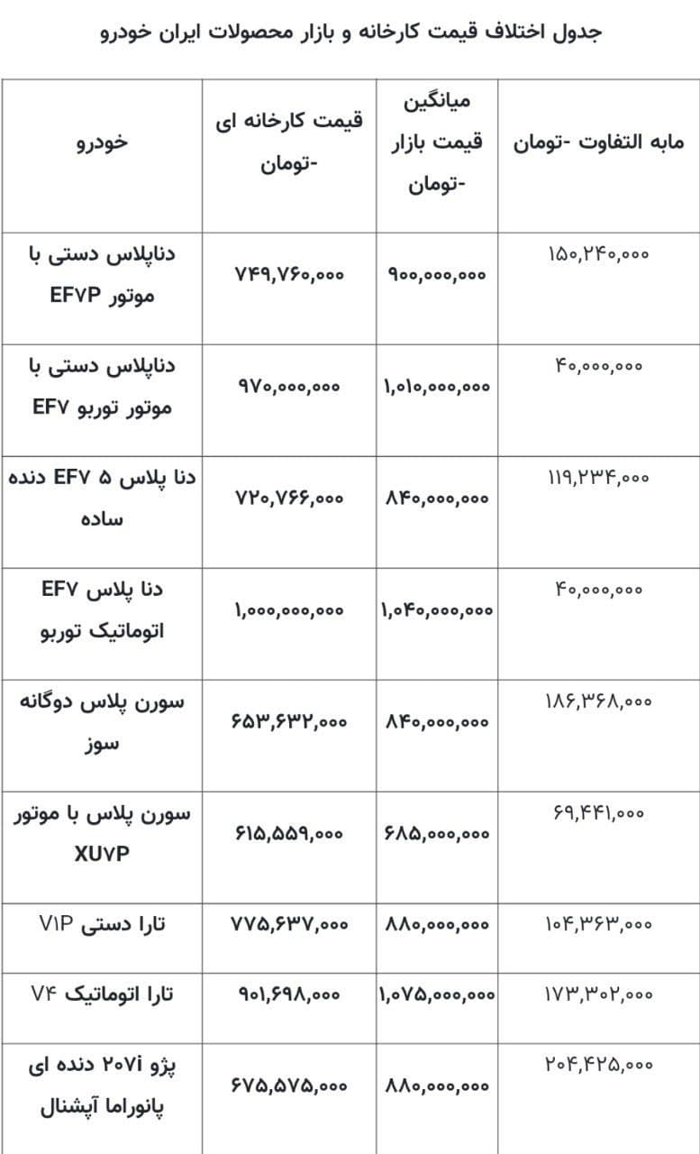 این مقایسه می تواند دیدگاه روشن تری درباره وضعیت بازار خودرو و جذابیت طرح های فروش ارائه دهد. بر اساس تحلیل و بررسی های انجام شده روی قیمت های کارخانه ای و بازار آزاد محصولات ایران خودرو در چارچوب این طرح فروش، مشاهده می شود که اختلاف قیمت ها در بازه ای قابل توجه قرار دارد. به طور مشخص،این تفاوت قیمت در محدوده ای بین 150 تا 210 میلیون تومان متغیر است. این فاصله قیمتی نشان دهنده شکاف قابل توجهی میان ارزش تعیین شده توسط کارخانه و آنچه در بازار آزاد معامله می شود، است که می تواند تحت تاثیر عوامل مختلفی از جمله عرضه و تقاضا، محدودیت تولید یا شرایط اقتصادی باشد.