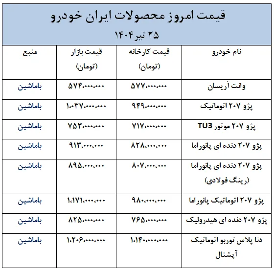 بازار خودروهای ایران خودرو؛ آخرین قیمت پژو 207 و دنا در بازار- 25 تیر 1404
