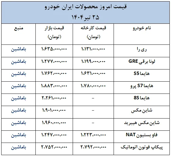 بازار خودروهای ایران خودرو؛ رکود و ثبات قیمت‌ها- 25 تیر 1404
