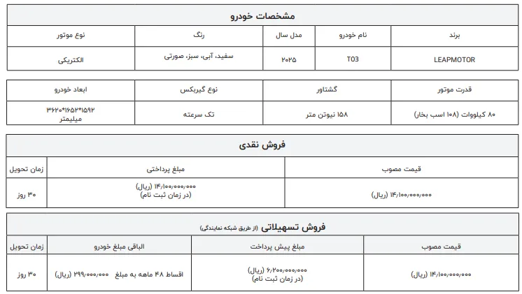 در طرح فروش نقدی، خریداران میتوانند با پرداخت کامل مبلغ خودرو در زمان ثبتنام، خودروی خود را ظرف مدت ۳۰ روز کاری تحویل بگیرند.
