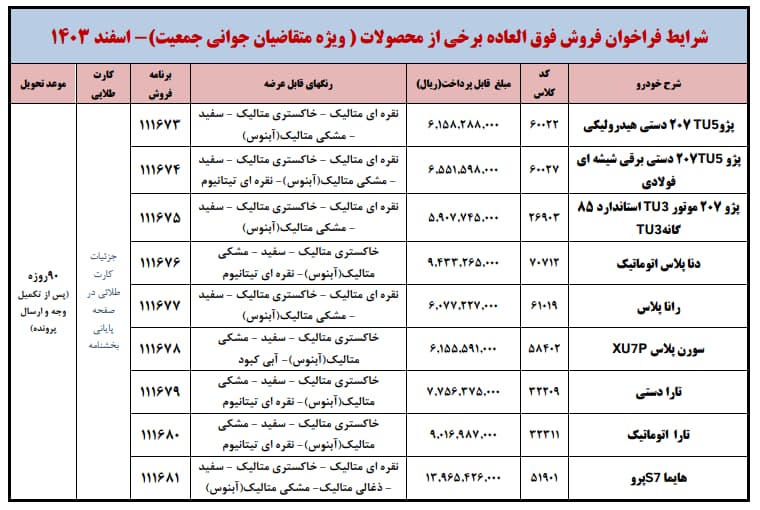 جزئیات فروش فوق العاده محصولات ایران خودرو ویژه متقاضیان جوانی جمعیت-اسفند ماه 1403