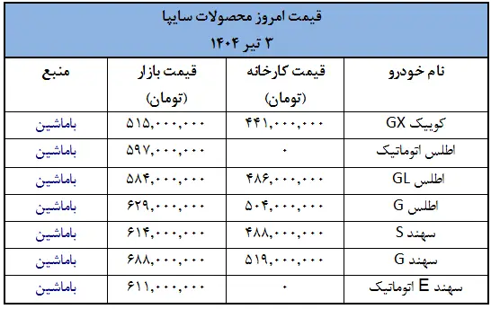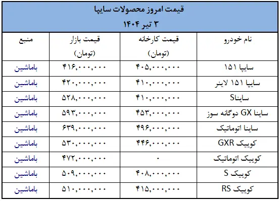 آخرین تغییرات قیمت خودروهای سایپا- تیر 1404
