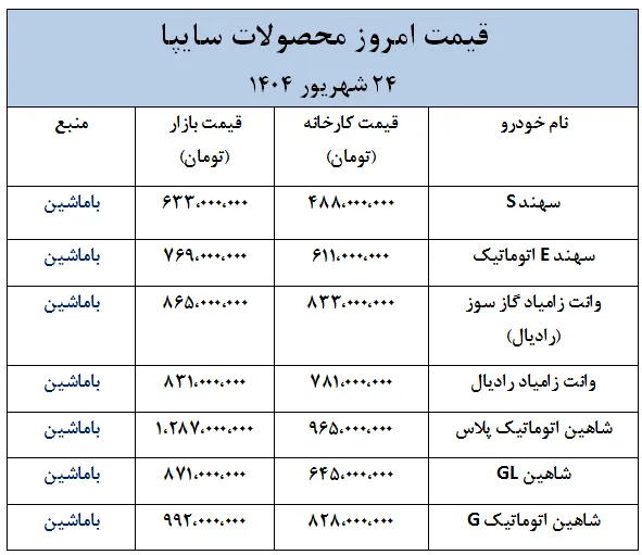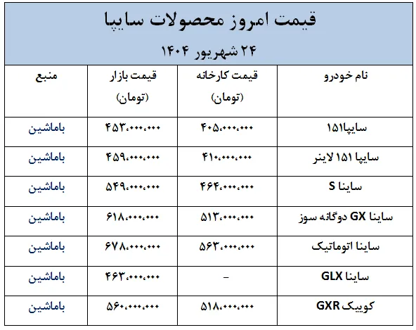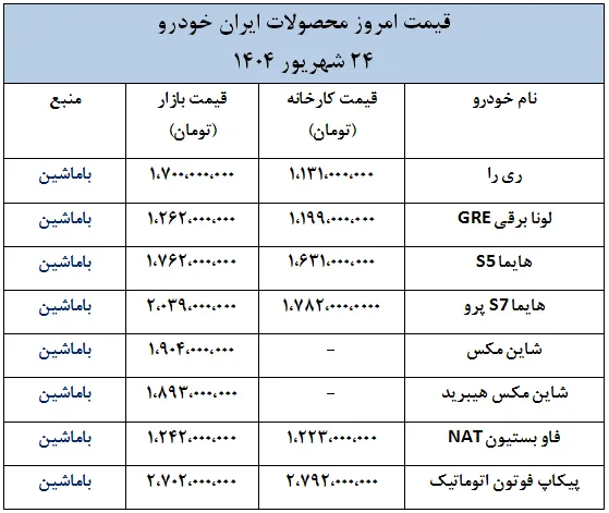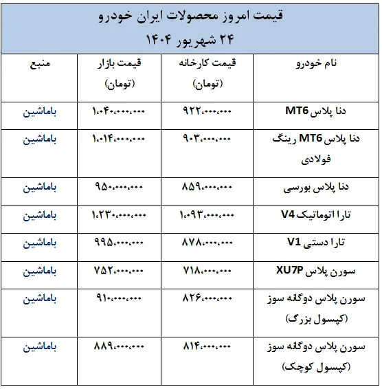 در ادامه قیمت امروز خودروهای سایپا و ایران خودرو در قالب جدول ارائه شده است.