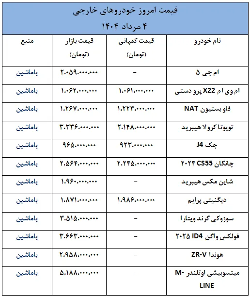 در ادامه قیمت روز خودروهای داخلی و خارجی در جدول برای شما مخاطبان ارائه شده است.